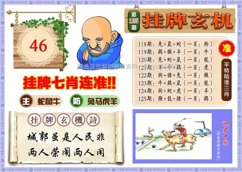 123期:单(牛鸡蛇)双(马龙狗虎)羊23中